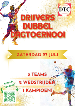 Heb jij zaterdag 27 juli al goud omcirkeld in je agenda? Dat is namelijk de datum van de volgende editie van het zomerse Drijvers Dubbel Dagtoernooi. Het tennistoernooi waar je in één dag die ene medaille kan winnen! Naast een hoop plezier op de baan is er natuurlijk ook weer veel vertier naast de baan. Dus trek je gouden pak aan en geniet van bubbels, aardbeien en een dag vol danspasjes en tennisplezier!
