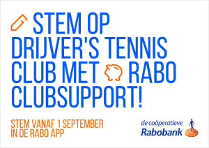 Iedereen verdient een club. Een plek waar je elkaar ontmoet, waar gewerkt wordt aan een duurzamere wereld, waar je elkaar sterker maakt en waar je helemaal jezelf kunt zijn. Stem van 1 tot en met 23 september op Drijver's TC bij de Rabo ClubSupport Actie.