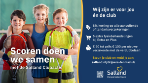Goed nieuws! Als lid van Drijver's TennisClub kun je profiteren van de exclusieve voordelen van de Clubactie van Salland Zorgverzekeringen. Kies bij het afsluiten van je zorgverzekering voor de collectiviteit van onze club. Dan help je niet alleen jezelf met een uitstekende zorgverzekering, maar steun je ook direct onze club. Een win-win situatie!
