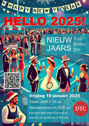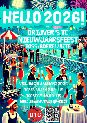 We wensen onze leden, donateurs en eenieders dierbaren een heel gelukkig en sportief 2025. We luiden het nieuwe jaar bij Drijver´s TC feestelijk in. Vrijdag 10 januari gaan we lekker tossen, houden we een speciale vrijdagmiddagborrel en proosten we samen op 2025. We eten er ook wat lekkers bij. Kom je ook?