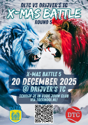Verdedig onze clubkleuren en DOE MEE met alweer de 4e editie van de X-MAS Battle DLTC versus Drijver's TC op zaterdag 21 december.
