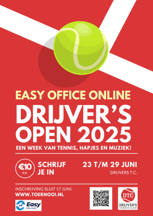 Wij hopen op een mooie zomer vol toernooien, en die zomer wordt zoals gebruikelijk afgetrapt bij Drijver's Tennisclub met ons open toernooi.