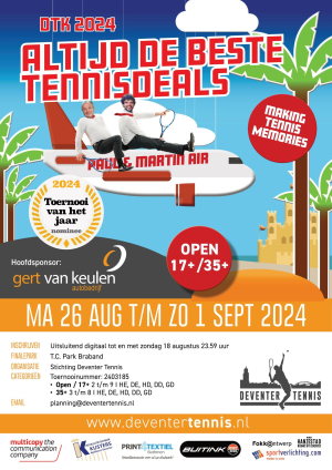 Alweer de 52e editie van het DTK tennistoernooi! Van maandag 26 augustus t/m zondag 1 september zijn de Autobedrijf Gert van Keulen Deventer Tenniskampioenschappen (DTK). Het zal ongetwijfeld weer een mooie editie worden.